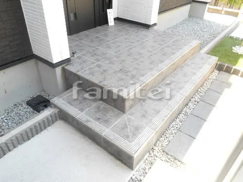 スタイリッシュなお住まいに美しく調和したタイル張りの玄関ポーチ設置工事No.6533その他外構工事の施工例外構工事のガーデンプラス。