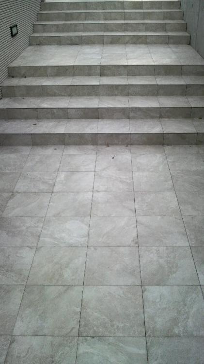 本日の玄関ポーチ床タイル工事今年最後の玄関ポーチバサモルタル新井窯業L型階段株式会社板橋技巧タイル施工会社タイル工事タイル職人タイル貼りタイル張りタイル屋建設業新築一戸建て。