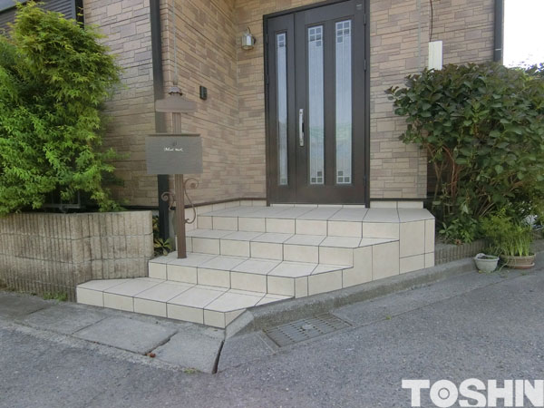 玄関ポーチタイル 貼り替え工事 施工例浜松・磐田・袋井のエクステリアならハマニグリーンパーク。