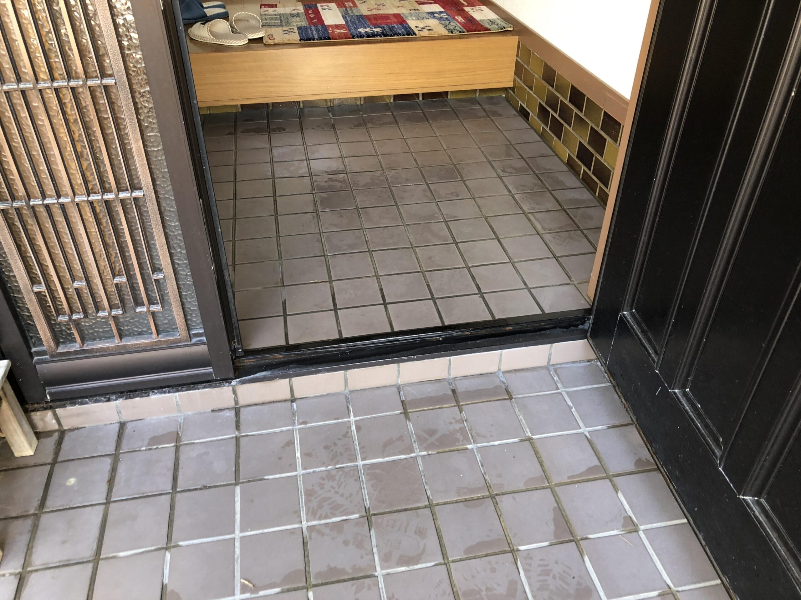 福岡市東区 F様邸 玄関タイル上張り工事雨の日も安心の滑りにくいタイル。