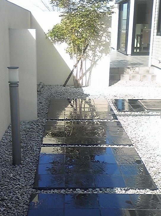 緑が映える玄関ポーチ施工事例RIVIERA デザインタイル・天然石のリビエラ株式会社。