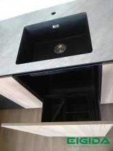 Stalviršis, sienelė– 10mm HPL Compact, pilkas marmuras 5427 juodu užpildu ESSE tekstūra, Trukmė.